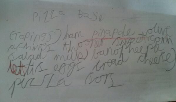 Quick trip to the shops. Faith wants to make pizzas for tea so she's written us a shopping list.