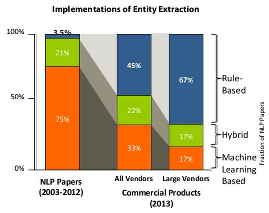 Interesting: a comparison of approaches taken to entity extraction by academia vs industry