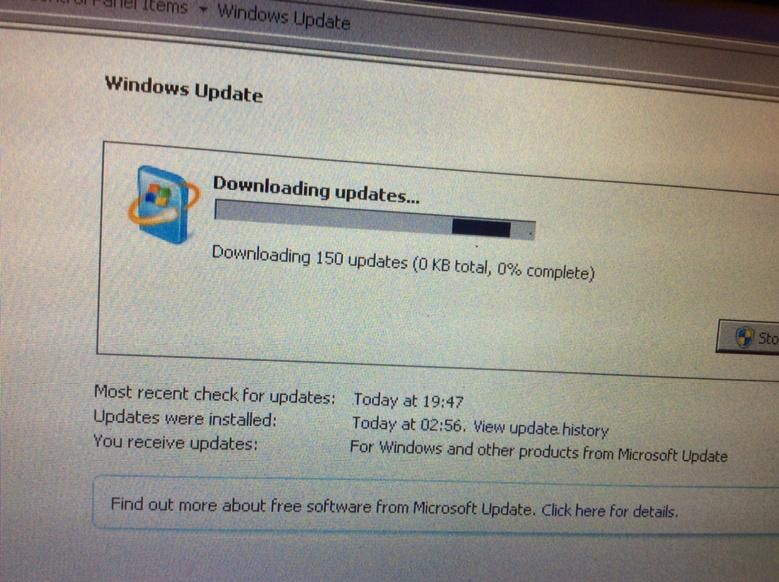 "Downloading 150 updates" It's possible that I don't turn this Windows box on often enough.