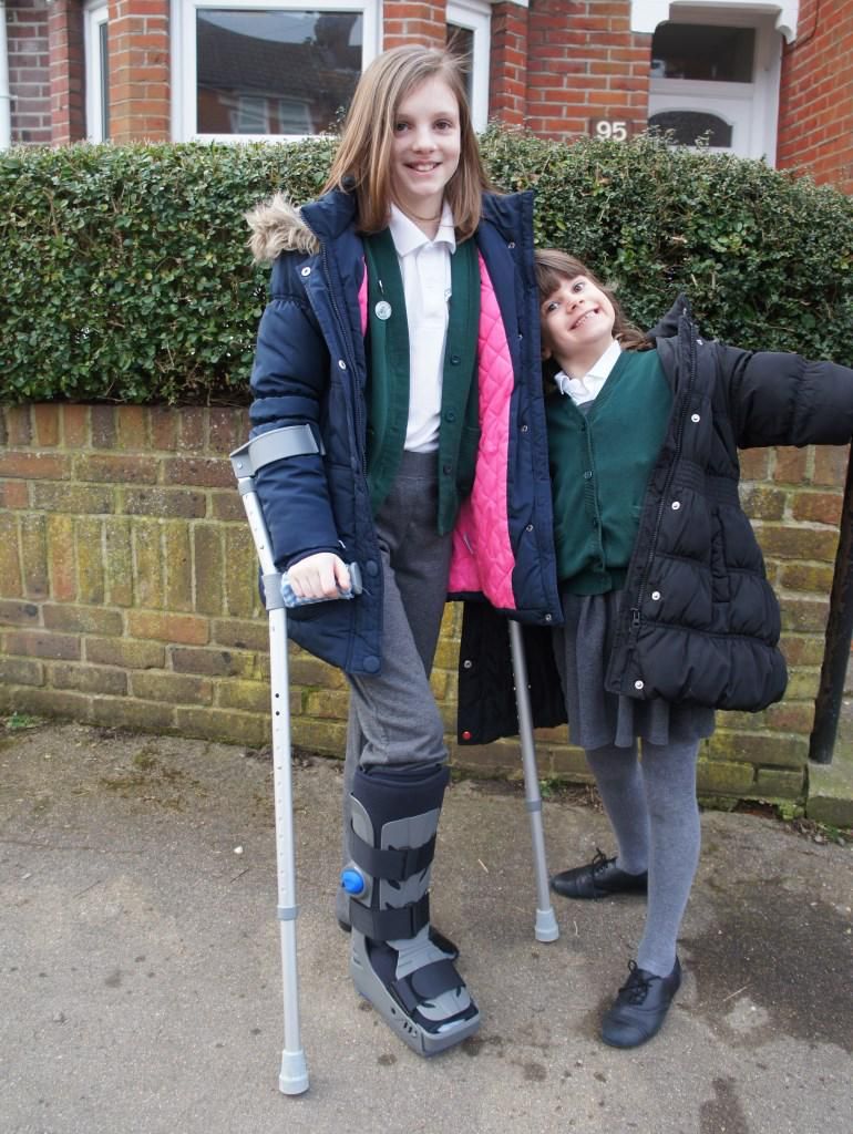 Grace's aircast. I tried "Dead or alive, you're coming with me" jokes but weirdly Robocop references go over her head