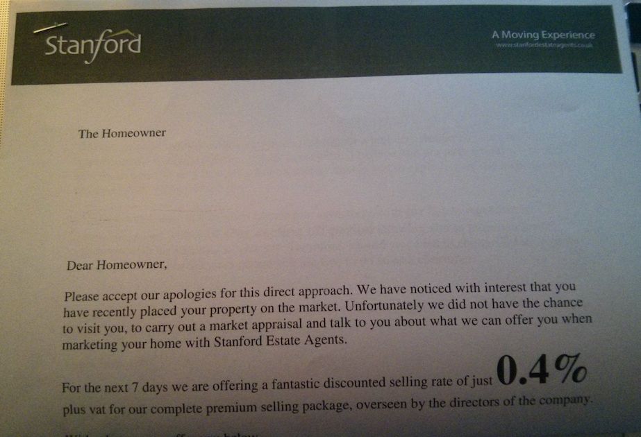 A letter from the estate agent who sold us our house 6 weeks ago. Moving house was so fun, why not do it again? ;-)