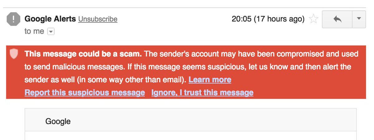 I love that Gmail thinks that Google Alert emails could be a scam :-)